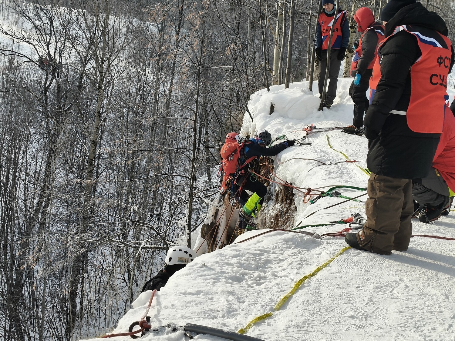 Дистанции 5 класса включали в себя спуск по склону со сдергом, подъем со сменой лидера, прохождение ледового моста, траверс крутого склона, восстановление (а в группах – наведение на ледобур) навесной переправы, элементы спасработ в двойках. Традиционной изюминкой этого полигона является этап, за которым с воодушевлением и надеждой всегда смотрят и судьи, и зрители – навесная переправа 45 м через весь овраг, которую команды наводили на ледобур-самовыкрут. Сначала нехотя и вальяжно, а затем рывками, все больше раскручиваясь, уже со свистом и финальным щелчком вылетевшего бура под радостные возгласы команды!